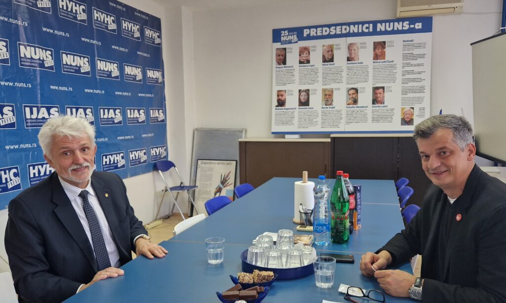 Željko Bodrožić, predsednik NUNS-a, upoznao je ambasadora Tolkača sa istorijatom NUNS-a, kao i trudom da se obezbede bolji uslovi za rad novinara, kao i sa načinom rada koji omogućava brže procesuiranje pretnji i napada na njih.