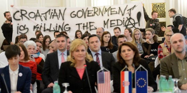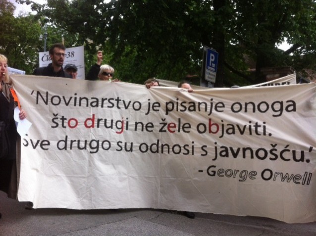 Zbog narušavanja medijskih sloboda, tristotinjak novinara i prosvjednika koji su im pružili podršku u povodu Svjetskog dana slobode medija zatražilo je ostavku ministra kulture Zlatka Hasanbegovića tijekom prosvjeda Sloboda novinarstvu’,