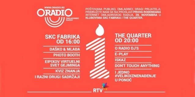 O radio – Internet radio za mlade Radio televizije Vojvodine u subotu 28. novembra, u klubu Fabrika Studentskog kulturnog centra Novi Sad i klubu „The Quarter“, organizuje bogat i zanimljiv