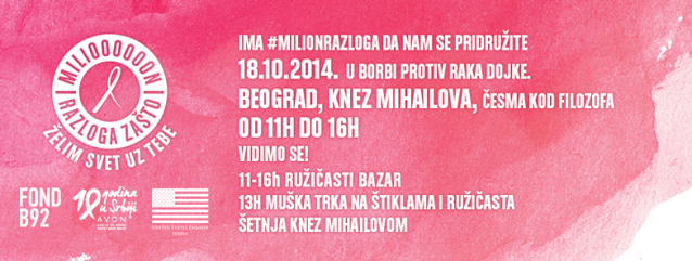 U subotu, 18. oktobra 2014, u 13:00 h, u okviru aktivnosti kojima se obeležava oktobar kao svetski mesec borbe protiv raka dojke, Ambasada SAD, u saradnji sa partnerima – Fondom