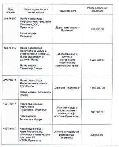 Nakon objavljivanja Odluke o raspodeli sredstava iz budžeta opštine Prijepolje na Konkursu raspisanom za sufinansiranje projekata za ostvarivanje javnog interesa u informisanju u 2017. godini, kojom je prijepoljskim medijima pripalo