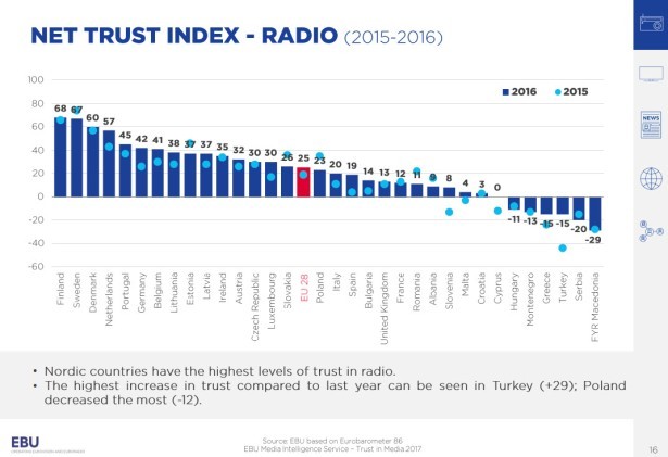 Prema analizi Evropske radiodifuzne unije (EBU) najveći deo građana Srbije ne veruje medijima, pa se tako naša zemlja po stepenu poverenja uglavnom nalazi na dnu lestvice. EBU je prošle nedelje,