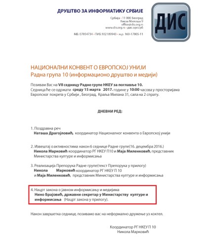 Predsednik NUNS-a Slaviša Lekić pokazao je prošlog utorka gledaocima Televizije N1 dokument za koji je tvrdio da predstavlja nacrt novog Zakona o javnom informisanju koji je Ministarstvo kulture i informisanja