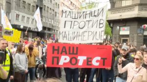 „Deo zaposlenih u javnom medijskom servisu blokirao je ulaz RTS-u u Takovskoj ulici. Protestovali su, kako navode, zbog vređanja koleginice iz niškog dopisništva, koju je zbog izraza ‘odjeknula tišina’ predsednik Srbije nazvao je imbecilom. Reagovali su i programski kolegijum RTS-a i redakcija dopisništva“, navela je voditeljka.