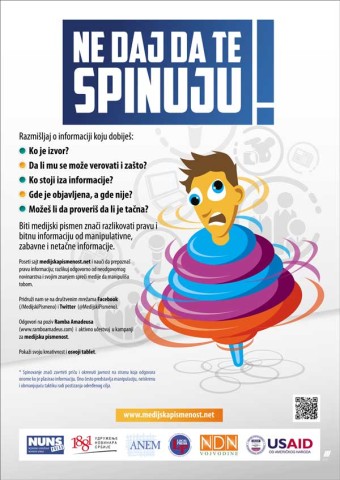– Ne verujte onim medijima u kojima su umrlice jedina pouzdana informacija. Kada prvi put uhvatite sebe da, bez trunke sumnje, poverujete u neku informaciju, vreme je da promenite kanal. Medijska pismenost je jedini put da se dođe do odgovornih medija i građana koji umeju da razlikuju stvarnost od fikcije – kaže Vukašin Obradović, predsednik Nezavisnog udruženja novinara Srbije, koje predvodi kampanju.
