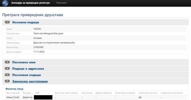 Prema podacima iz privrednog registra, firma „Tačno“ d.o.o osnovana je 17. novembra ove godine, a njeni vlasnici Minacord media čiji je vlasnički udeo 40 odsto, i RTV Pančevo čiji je vlasnički udeo 60 odsto.