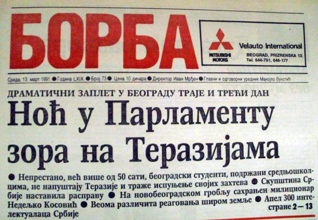 Ivan Mrđen: „Pokrenuli su je komunisti, zabranjivala kraljevska vlast, u Užicu 1941. obnovili partizani, u socijalističkoj Jugoslaviji bila partijsko pa državno glasilo, krajem osamdesetih i početkom devedesetih postala najsnažnije uporište tadašnje opozicije u Srbiji, da bi posle Devetog marta 1991. dostigla i tiraže od 150.000 primeraka. Uoči Nove 1995. oteli je julovci, sve što je u tom listu vredelo prešlo u Našu borbu, ukinutu zloglasnim Šešeljevim zakonom o informisanju, a posle Petog oktobra nova vlast nije imala ni volje ni snage da je obnovi. Praktično ju je pre desetak godina posle ‘privatizacije’ sahranio naš nekadašnji kolega Ivan Radovanović, da bi se povampirila preklane kao nekakav mesečnik za kulturu, umetnost i promociju turizma.“ |