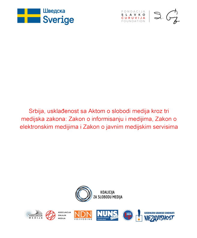 Slavko Ćuruvija fondacija i Koalicija za slobodu medija objavile su dve analize koje sagledavaju usklađenost pravnog i institucionalnog okvira u Srbiji sa Evropskim aktom o slobodi medija (EMFA), kao i mogućnosti njegove