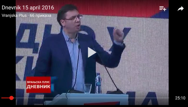 U ovom prilogu našle su se i izjave lokalnih lidera koji oštro kritikuju lokalnu vlast u Vranju, čiji je stožer u prethodne četiri godine bio SPS, inače glavni konkurent SNS-u na predstojećim izborima. Vranjska plus gledaocima u istom izveštaju nudi još malo Vučića, koji sa bine i najavljuje „borbu za interese naroda“ i „više pomoći za opštine juga Srbije“. Osim tih sedam minuta, naprednjaci u ovom dnevniku dobijaju i dodatna četiri, pošto se u nastavku emituje i priča o kampanji naprednjaka u vranjskim selima.
